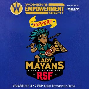 The Lady Mayans and Sunday Session girls will represent RSF Girls Flag Football at Women’s Empowerment Night on March 4 at Kaiser Permanente Arena, celebrating girls in sports and leadership.